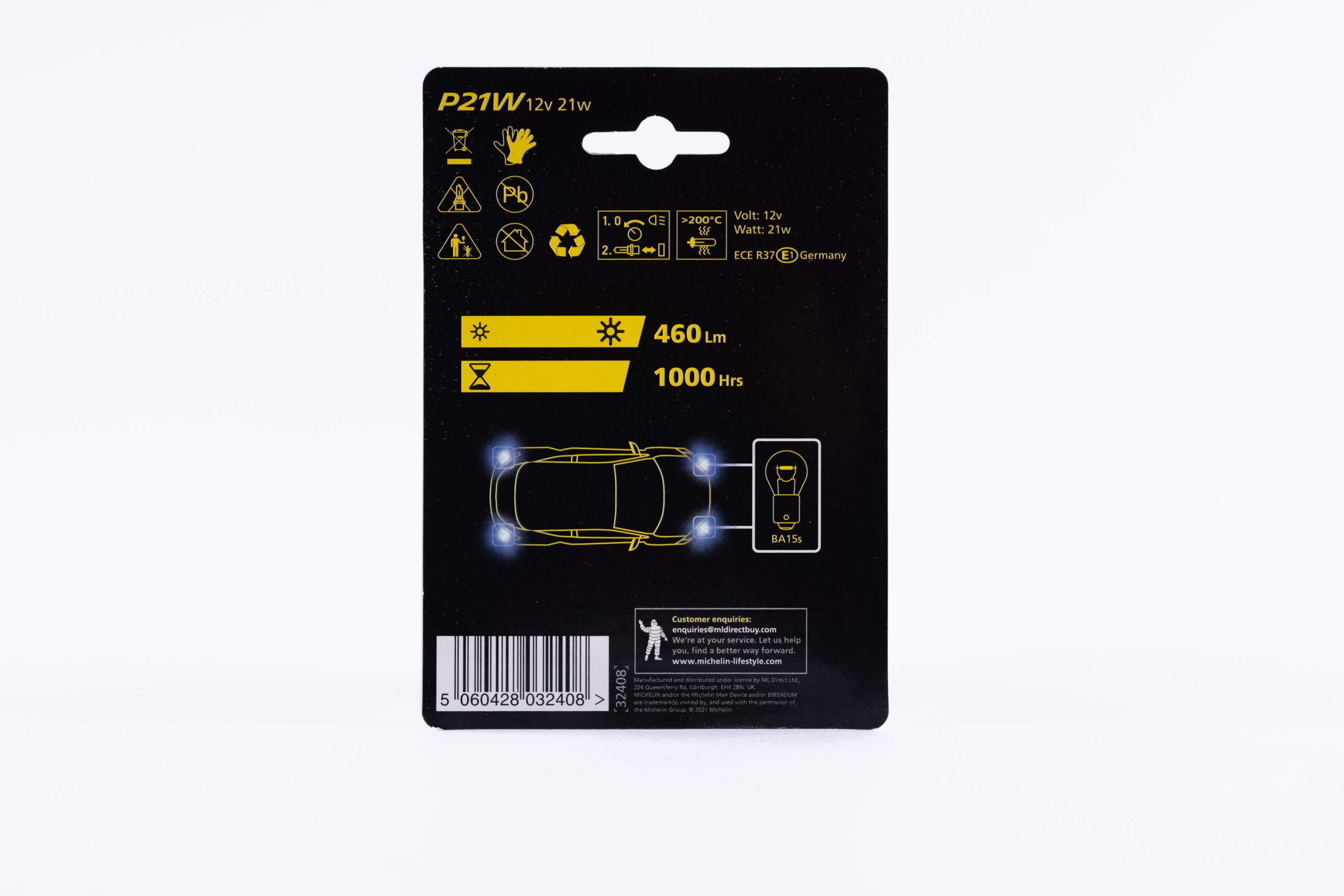 MICHELIN P21W Extra long life Stop and flasher lamps 12V 21W BA15s Double Blister